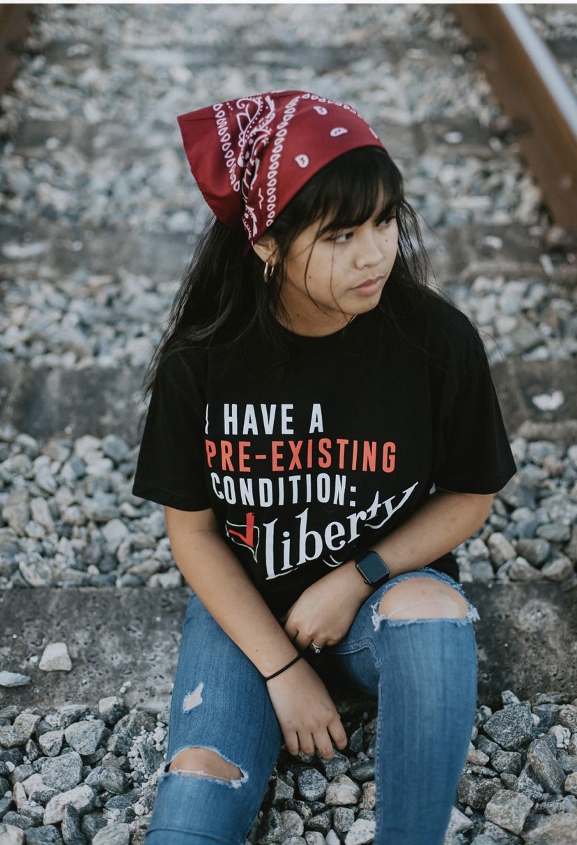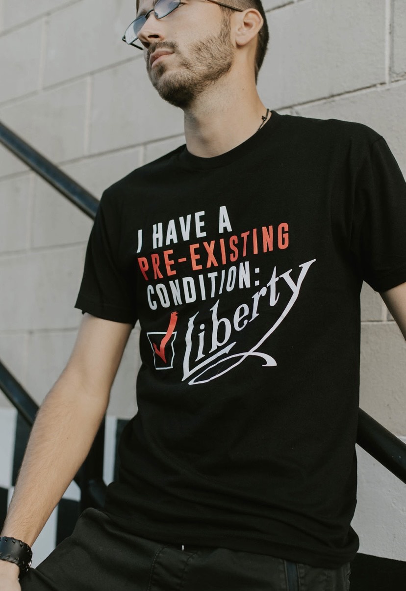 This shirt is meant to have a playful yet very serious message. As our rights are being striped and given to us only if we have pre-existing conditions. We all have a pre-existing condition…it’s called Liberty!!!